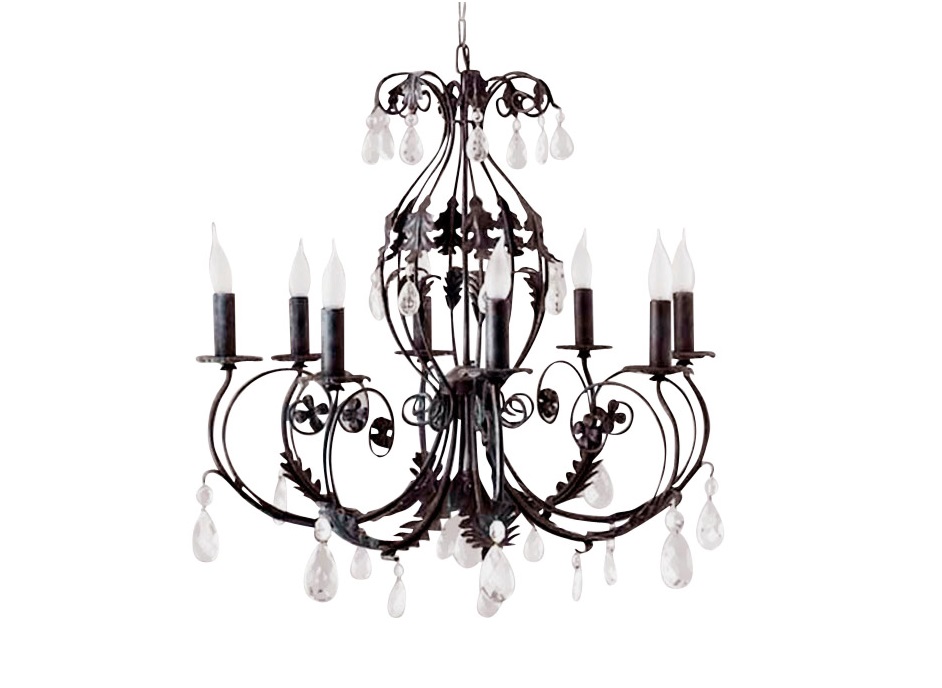 Люстра металлическая c покрытием "темно-коричневый с золотой патиной", декорирована подвесками в виде кулонов из прозрачного хрусталя Swarovski.