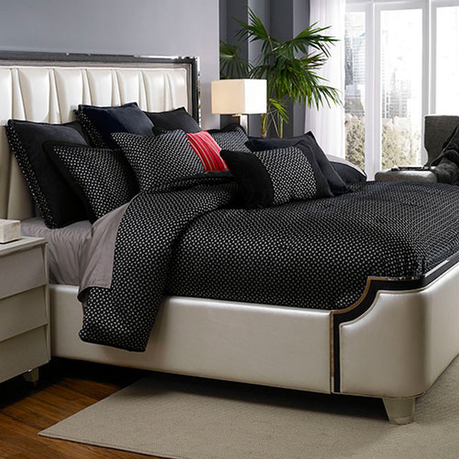 1 легкое одеяло похожее на тонкое покрывало; 2 наволочки Евро Sham ; 2 стандартные декоративные наволочки; 4 декоративных подушек.